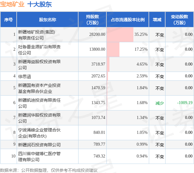 根据宝地矿业2025年中报公布的十大股东详情如下: